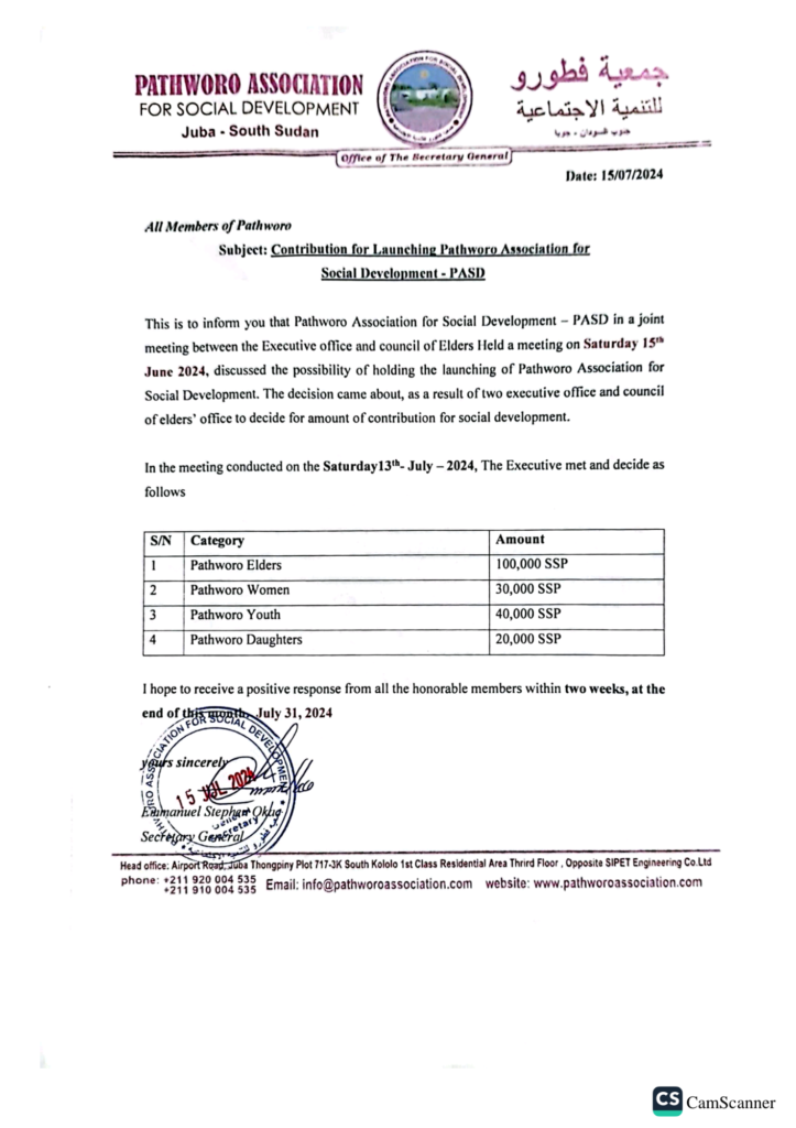 The decision came about, as a result of two executive office and council of elders’ office to decide for amount of contribution for social development.